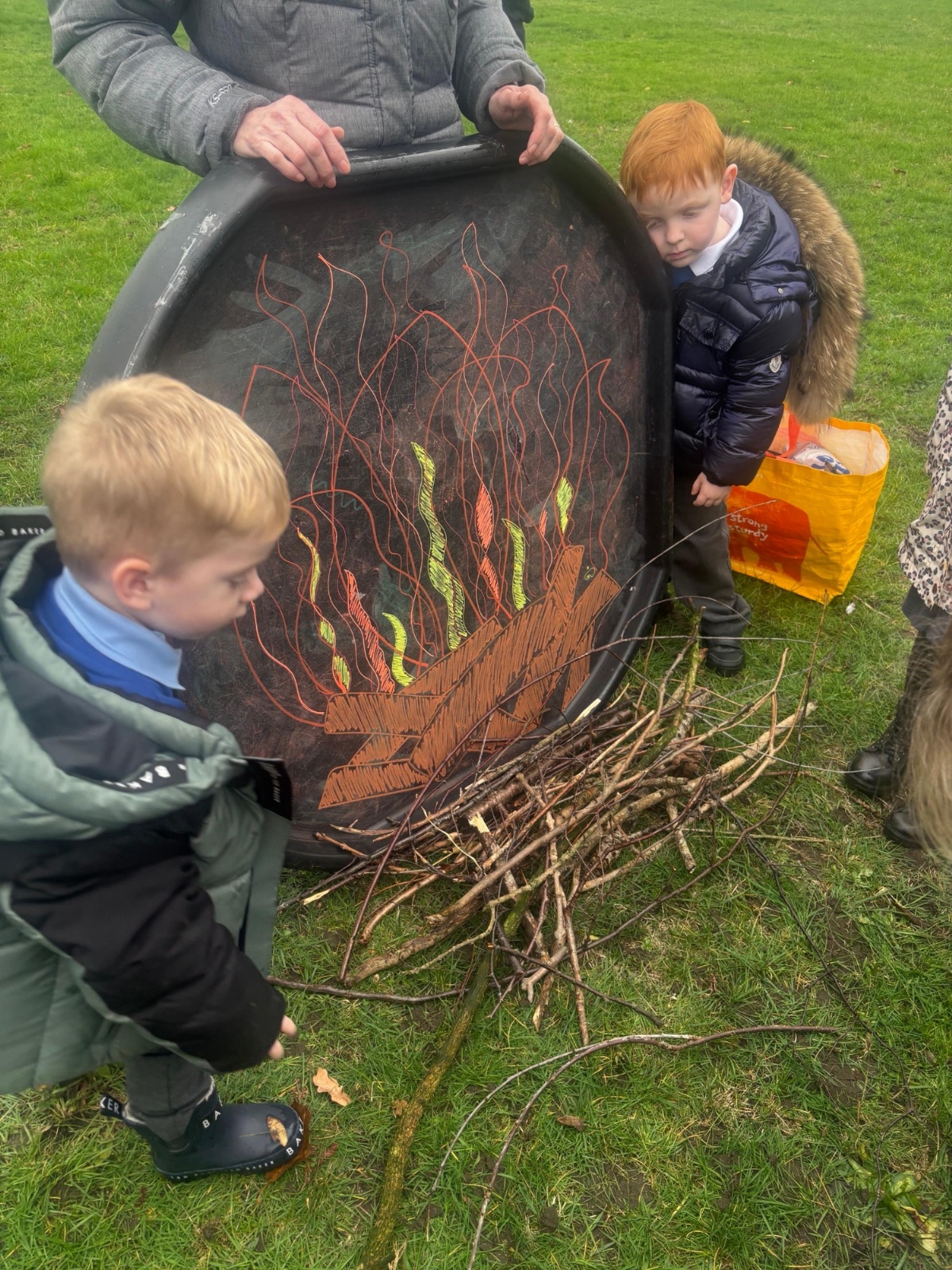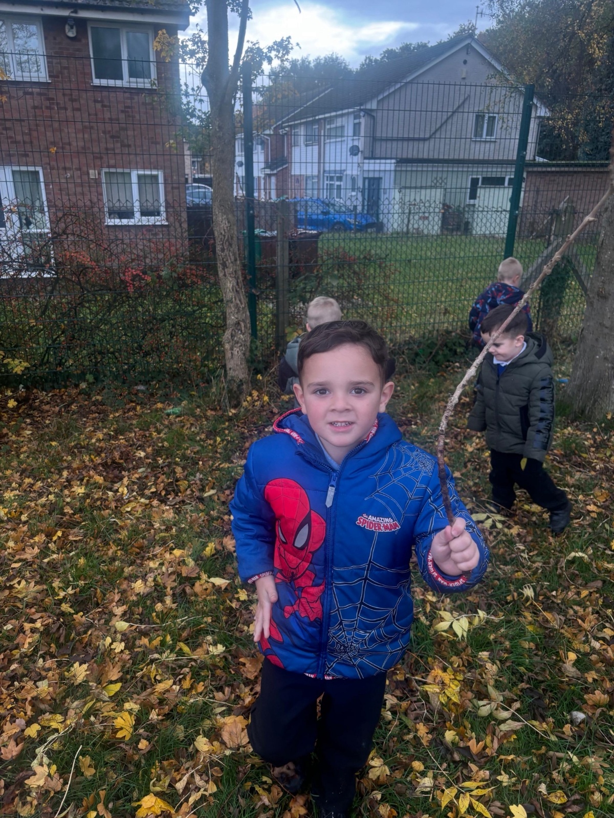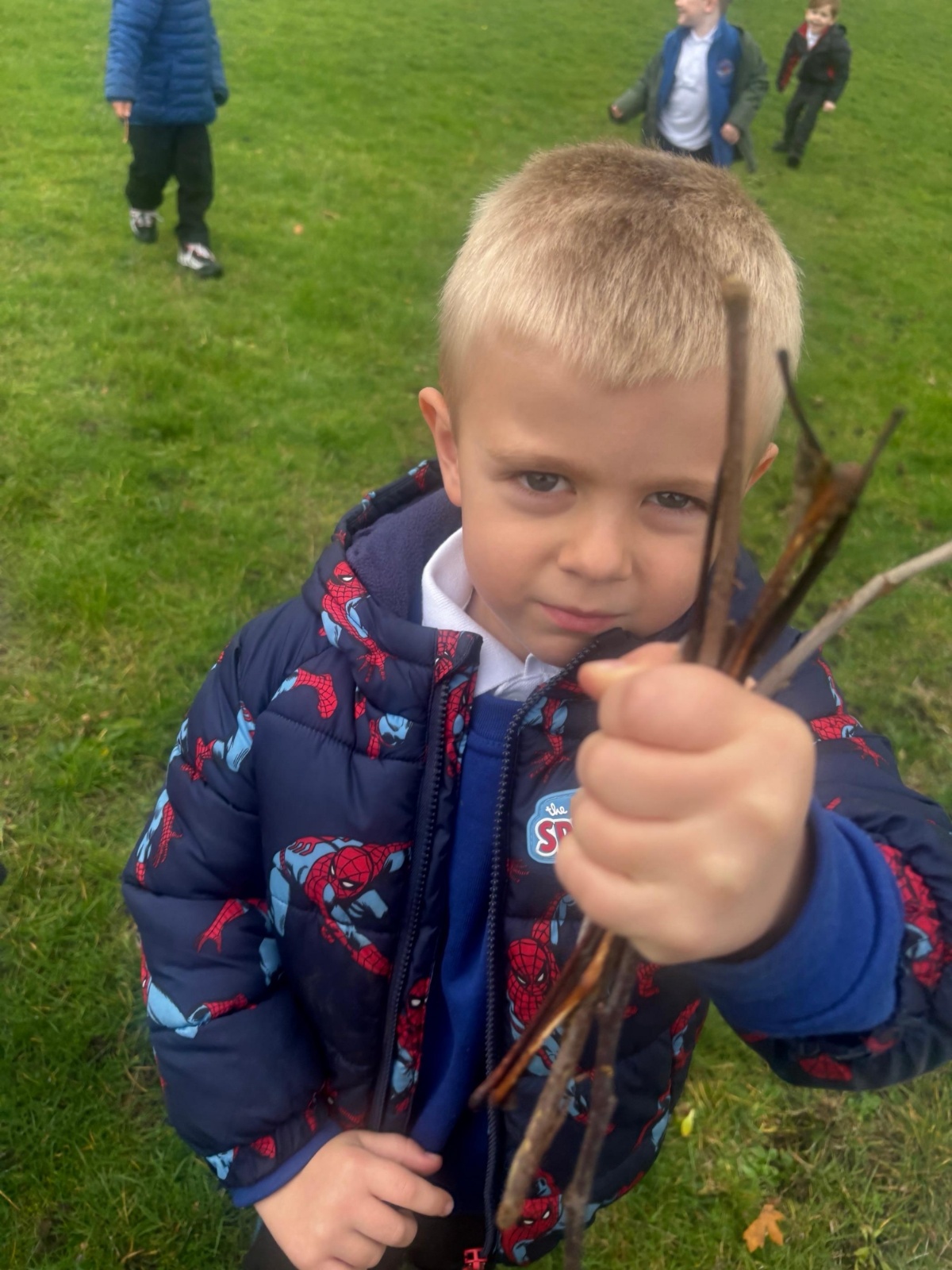 On Welly Wednesday, we talked about Bonfire Night and why it is celebrated. We learned about the history behind the event and the traditions associated with it. After our discussion, we went outside to collect our own sticks and built a pretend bonfire together. We then enjoyed singing songs around our ‘fire,’ bringing the celebration to life in a fun and safe way.