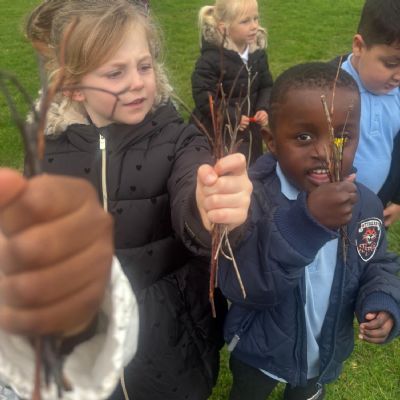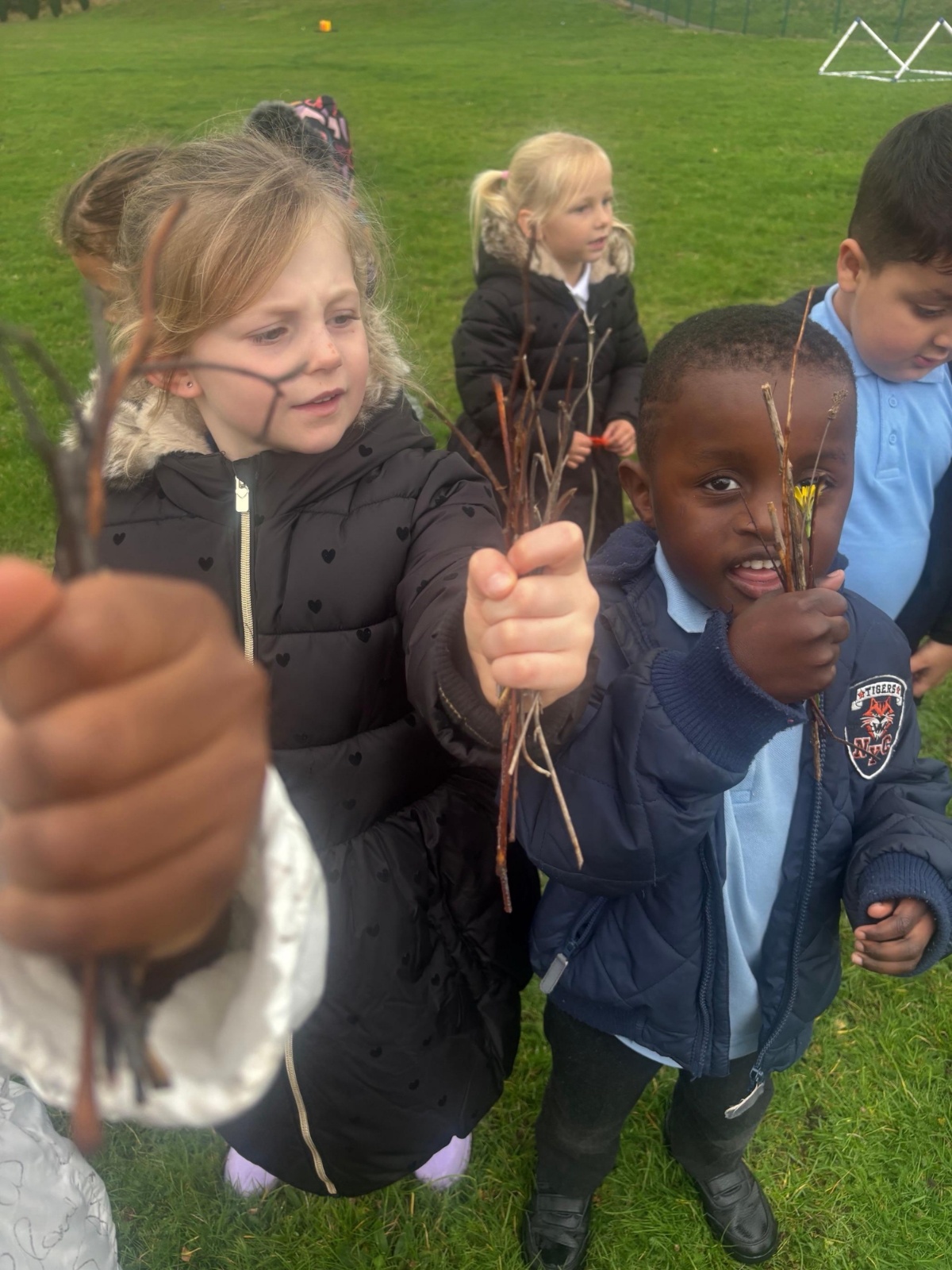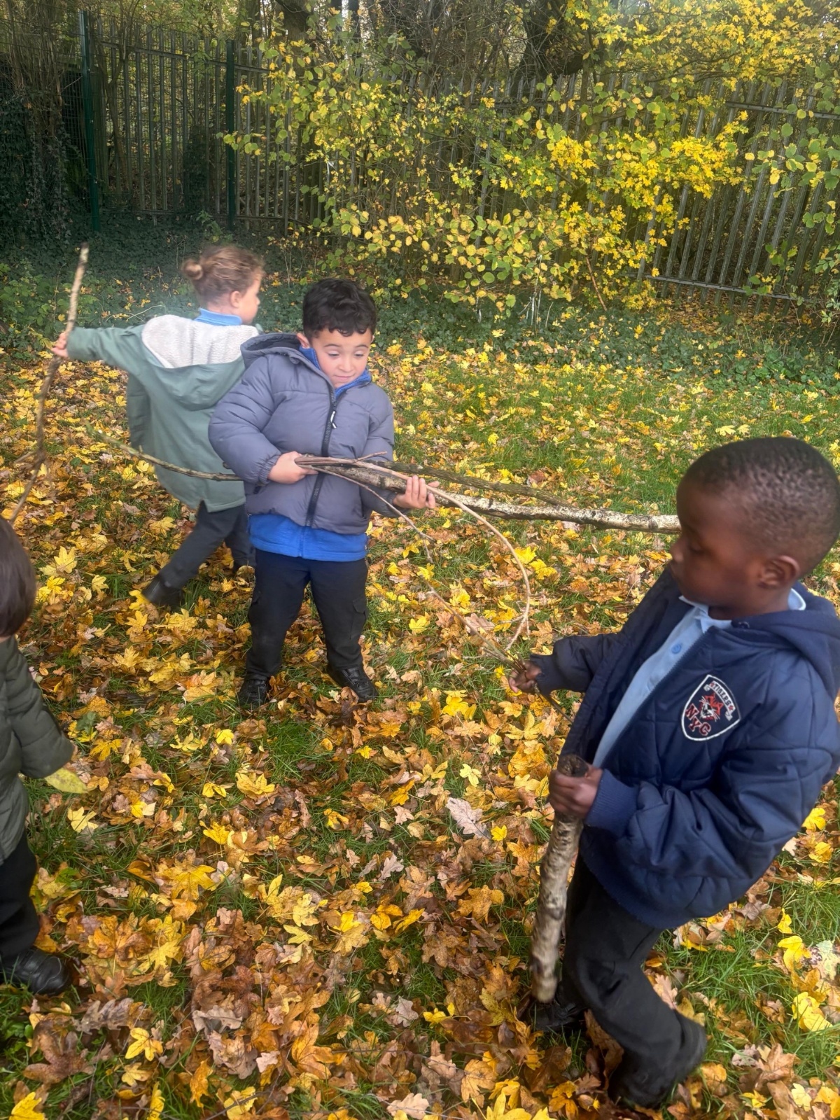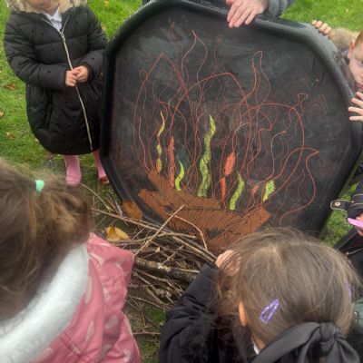 On Welly Wednesday, we talked about Bonfire Night and why it is celebrated. We learned about the history behind the event and the traditions associated with it. After our discussion, we went outside to collect our own sticks and built a pretend bonfire together. We then enjoyed singing songs around our ‘fire,’ bringing the celebration to life in a fun and safe way.