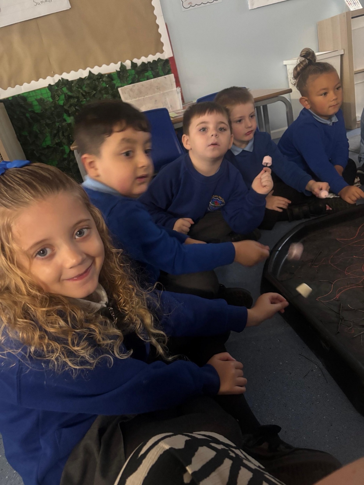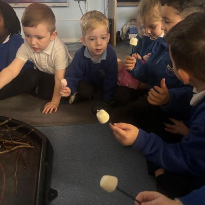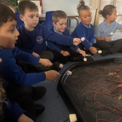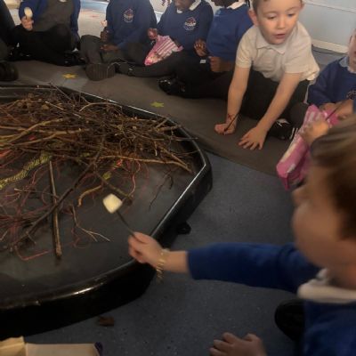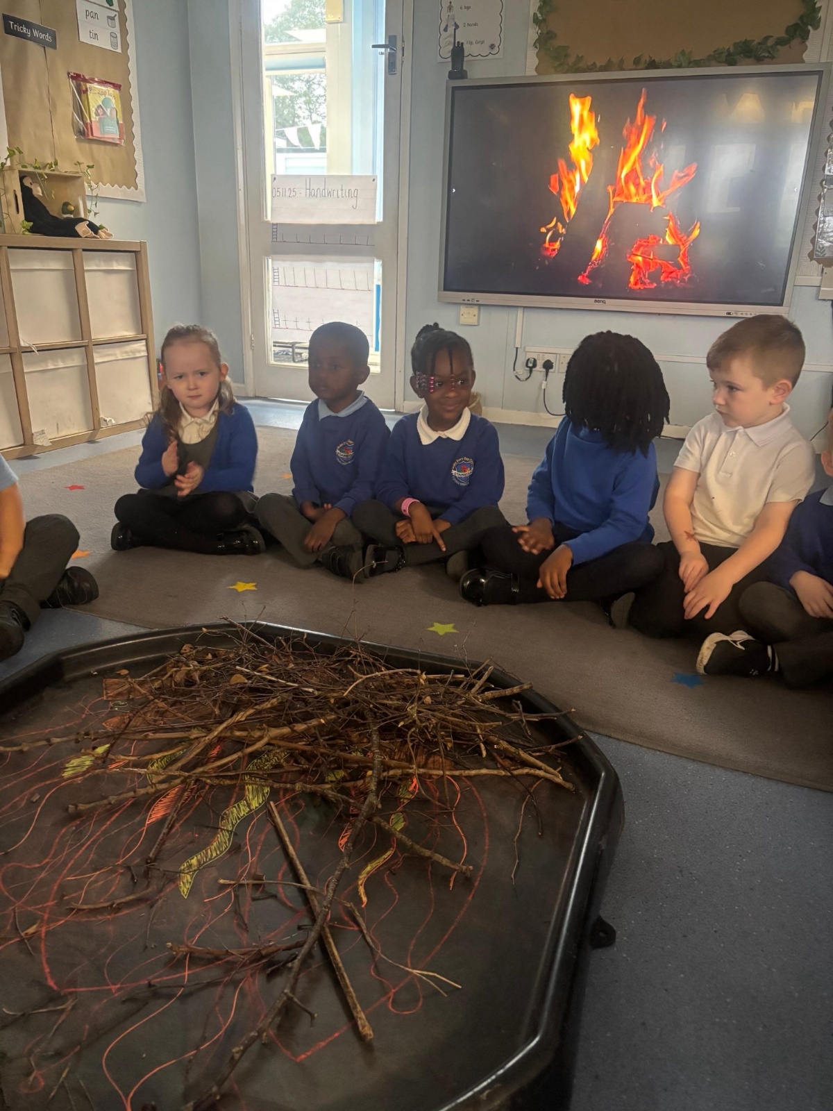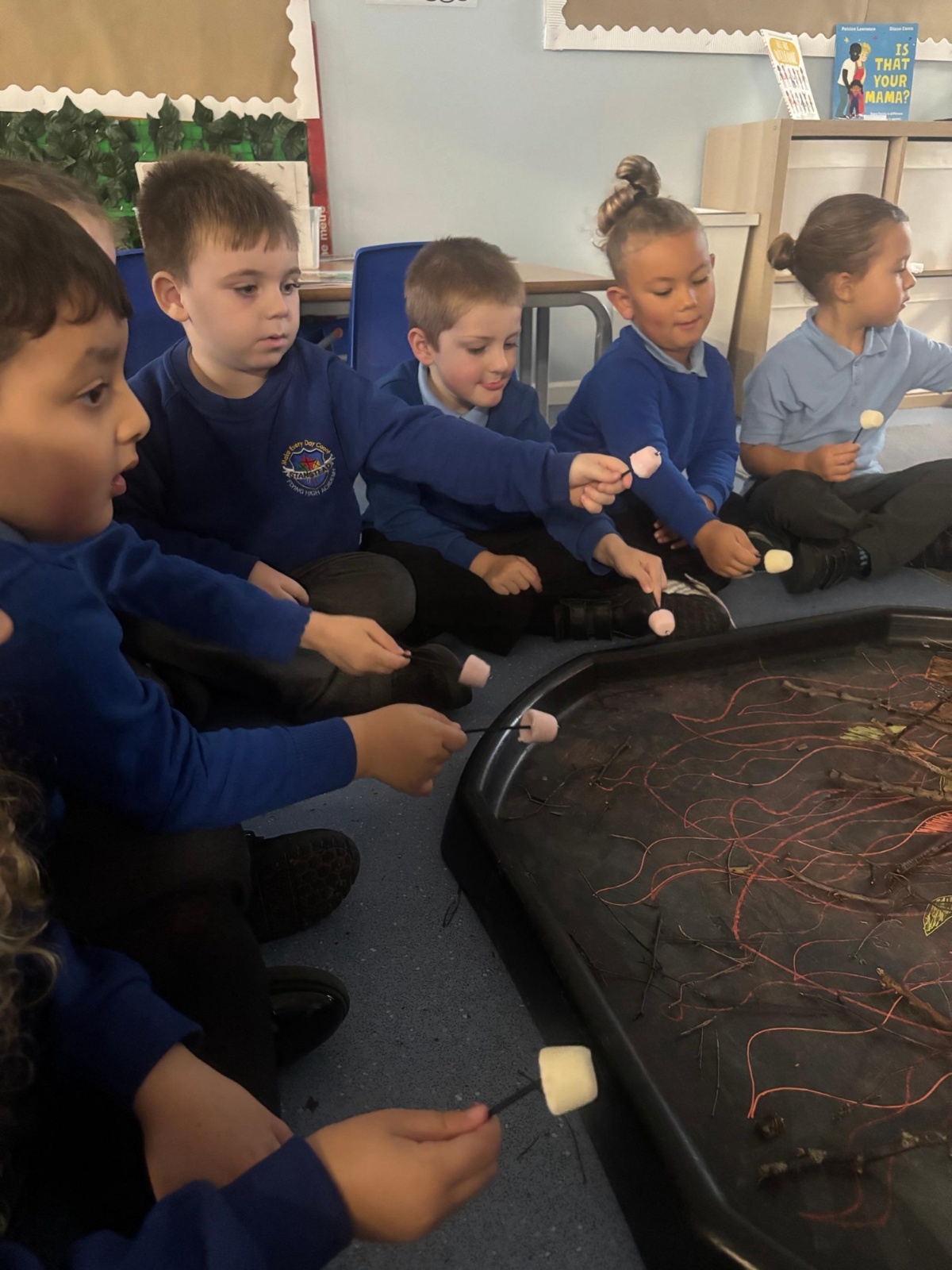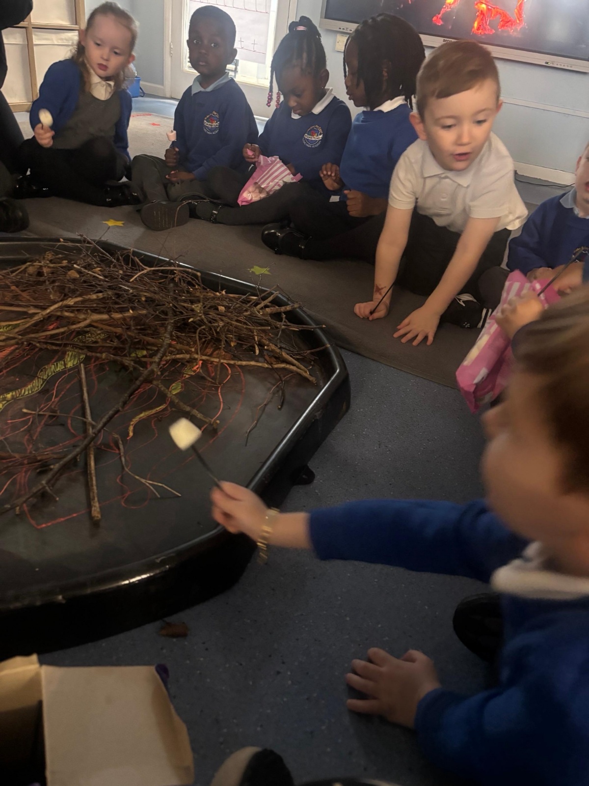 During our Literacy immersion session, we used the sticks we collected on Welly Wednesday to create another bonfire. We had been reading the story Little Glow and learnt lots of new vocabulary. Using this new language, we had discussions while sitting around our bonfire, listening to the ‘crackling’ sounds, seeing the bright colours of the fireworks, and even ‘toasting’ our marshmallows, bringing the story and our learning to life.