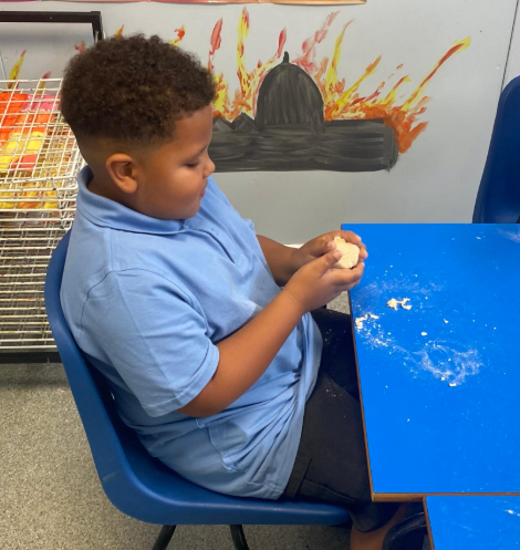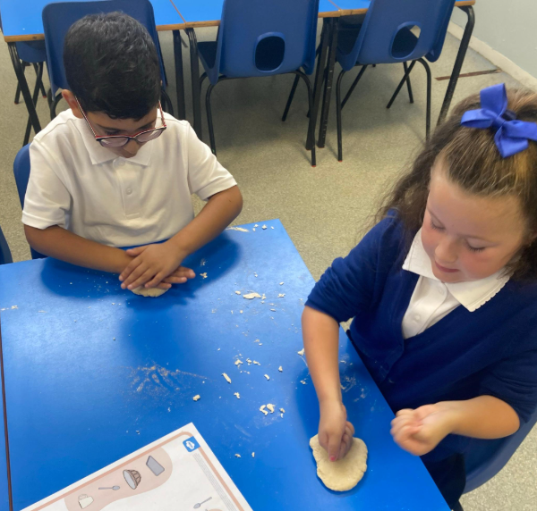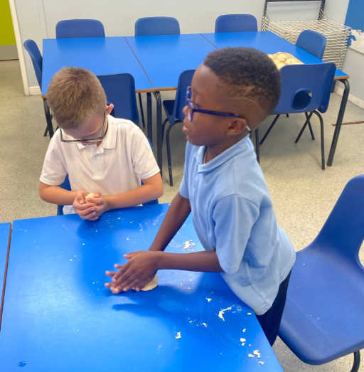 Year 2 taking part in their 'hook' activity of making bread about their Great Fire of London topic: